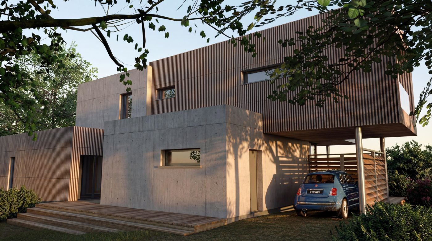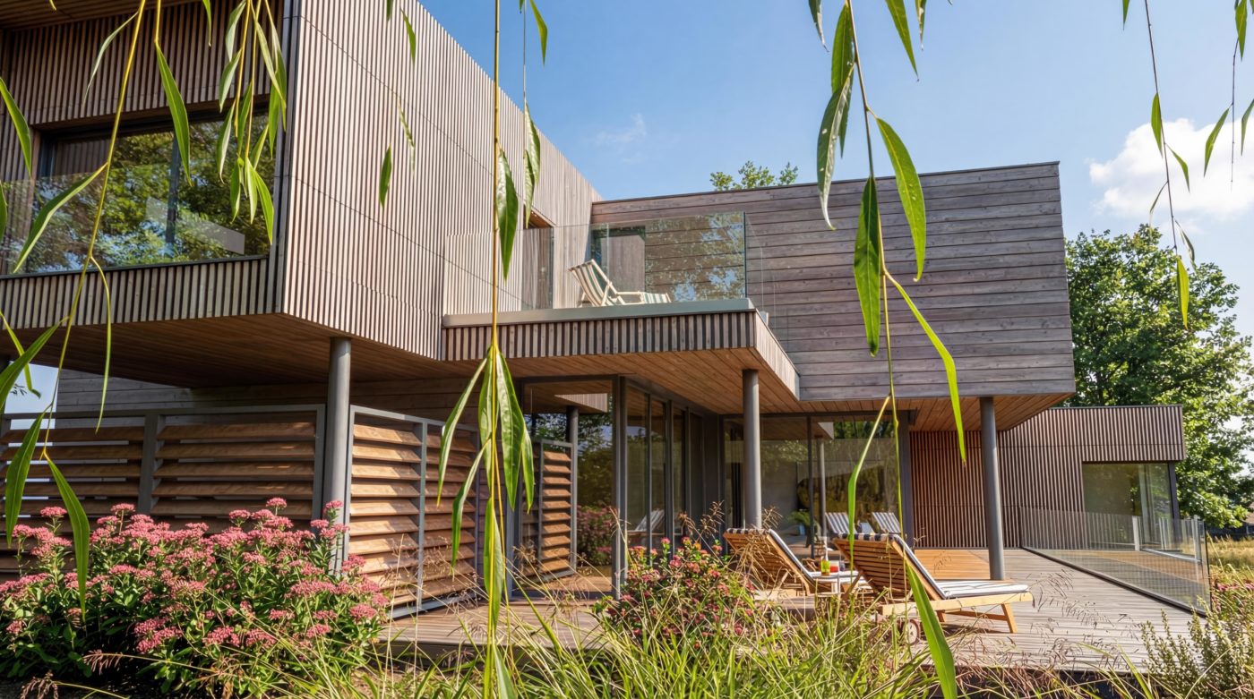 • [glossary slug="bardage"]Bardage[/glossary] de façade en red cedar huilé en pose horizontale et verticale